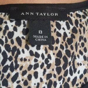 5/$55 Ann Taylor peplum side-zip top - sleeveless - animal print - black trim 8