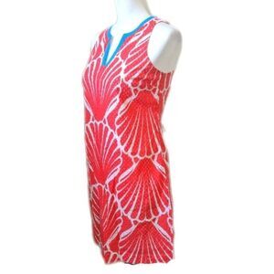 5/$55 Crown & Ivy shell print coral & white dress, contrasting trim & back zip 2
