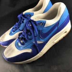 555284-105 Nike Air Max 1 Vintage Sail/Hyper Blue-Blitz Blue Gum Medium Brown