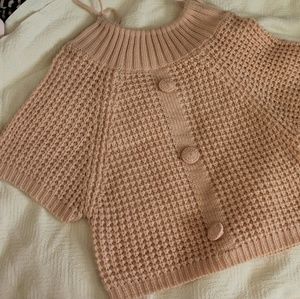 A dark, navy blue skirt with suspenders. It has one white button and three navy blue ones below it. It is cute, quirky, and unique. I am a small and it hangs too big on me. Worn only once or twice.