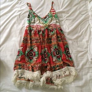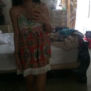 LF coral print fringe romper