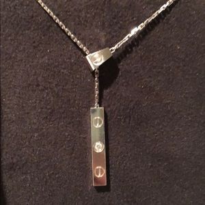 Cartier 18kt white gold adjustable lariat drop pendant love collection necklace. Very rare, hard to find, only made for one fall season. Snap closure, can be adjusted to length of drop. Love this feature so it works any neck line. Pendant is approx 1 1/4" long & has Cartier's signature 2 love screws top and bottom and gorg diamond in the middle. All Cartier diamonds are of high quality and certified. Guaranteed authentic and brand new. Comes with Original Cartier box and shopping bag. No trades