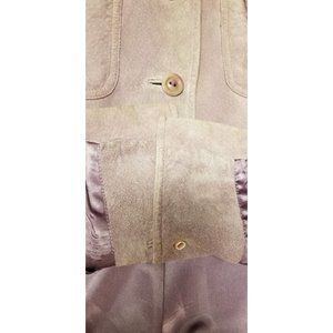 #55C Pre-owned Classiques Entier mauve suede feminine woman coat S OBO!All measurements are approximate, taken lying flat from side seam to side seam unless otherwise stated: Long (measured from nape of the neck to the bottom) 22.75” Bust (taken lying flat from side seam to side seam under armpit) 18.5” Waist 16.5” Bottom of the coat (hips approx.) 21” Sleeve 23.25” Shoulder 5.25” Features: 4 matching buttons. Shows some wear on the inside of collar, sleeves and bottom, NOT on the outside. Lined.