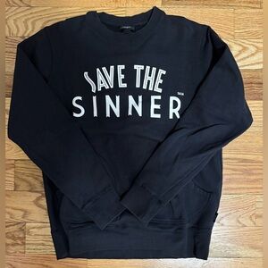 55DSL SAVE THE SINNER BLACK CREWNECK SWEATSHIRT WITH POCKETS