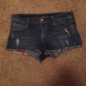 Medium/ dark wash forever 21 denim jeans with British flag pockets that show a little when the shorts are worn. Minimally used, go with anything and are super comfortable! No wear and tear, great condition :)