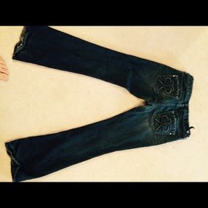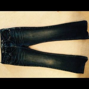 EUC, Dark wash jeans sz 0 Short. The Brand is Rock & Republic Jeans purchased at the Express. Great Jeans worn a couple times. Pictures just show where the bottom of jeans was folded. I have many more skinny and boot cut to sell from Express. Just ask for pics if interested