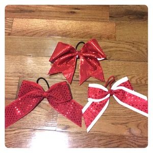 3 cheerleading bows. One thick red bow, one thin red bow, and one red and white bow. Can sell separately if needed!