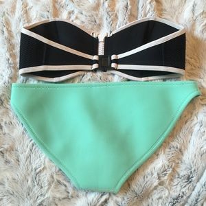 100% authentic! Paid 120 with shipping. Small top. Xsmall bottoms. Small dots on the bottom, I couldn't even get photos of it. Worn at the most 5 times.