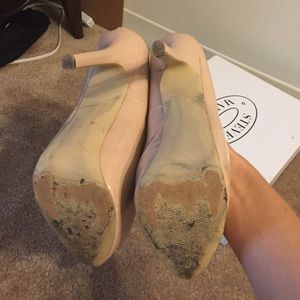 Worn once. Scuffs and some marks. 6 inch heel. Nude patent leather.