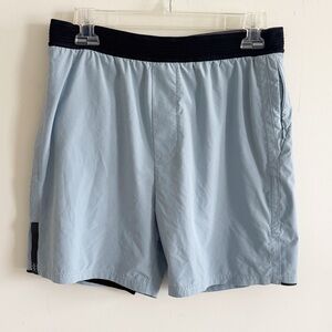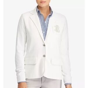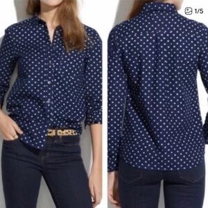 Pretty navy blue sweater with white lace stripe design. Runs a little loose and could fit a large. No flaws!