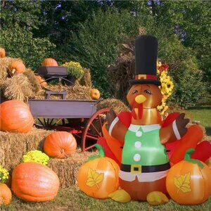 5.5ft Christmas Inflatable Outdoor Decorations, Pumpkin Turkey Inflatable Yard