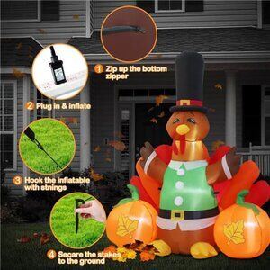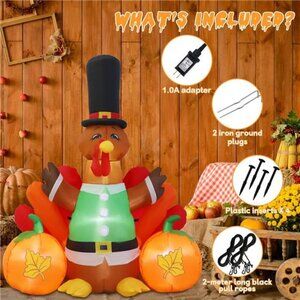 High Stability for Outdoor Use: No need to worry about the 5.5ft tall outdoor Thanksgiving decorations flying away with the wind. Our Thanksgiving inflatable comes with 2 ropes, 2 plastic ground stakes and two iron ground inserts