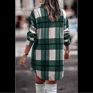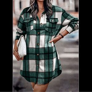 56. Green Shacket Loose Plaid Button Closure Pocket Shirt Dress Boutique Size L