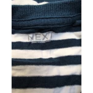 VGUC Next applique long sleeve tunic tee. Navy blue and white stripes with large Santa applique. Light wash wear