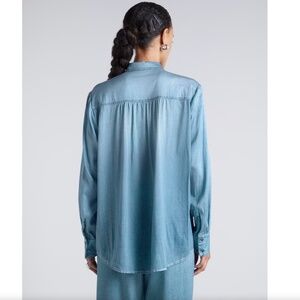 560. SPLENDID x Kate Young Silk Button-Down Denim-Print Shirt $328 NWT XS