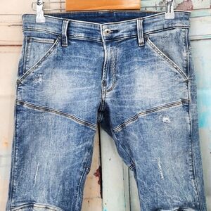 Subtle distressing, allover moto seams