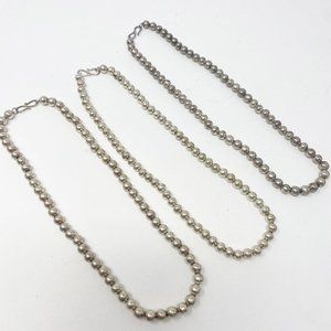 563 Set of Three Handmade Sterling Silver Bead Strand Necklaces, 16inch