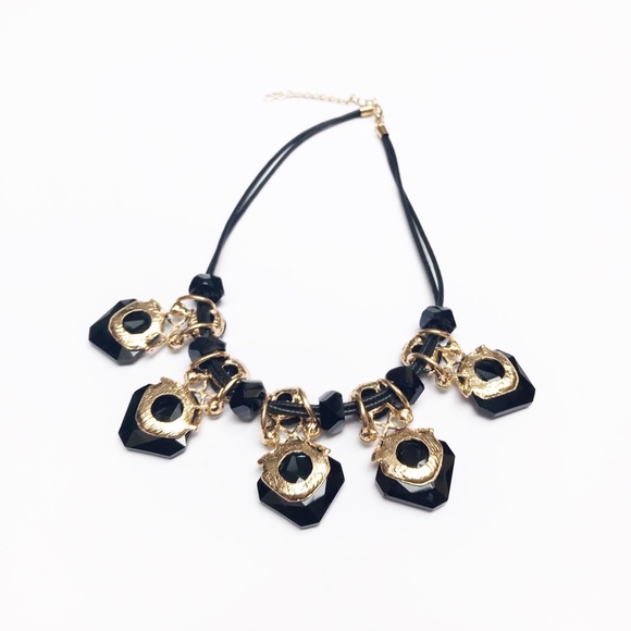 Black beaded rhinestone statement necklace