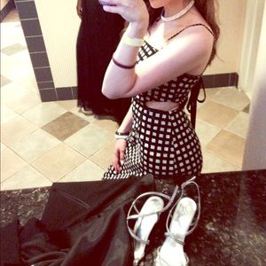 Sequined, cut out sides, fits so good on the body only worn once, lace up back