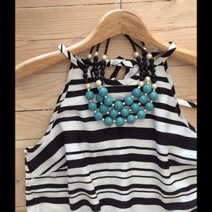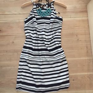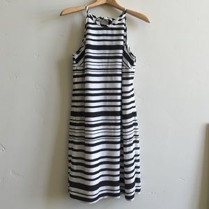 Beautiful black and white striped lined dress. 100% polyester. In gently used condition.