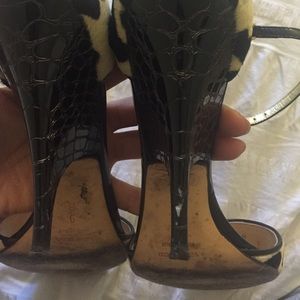 Animal printed pony hair sandals. I've only worn them about 4 times and in good conditions. The left shoe does have a scratch on the back of the bottom heel. You can see it on the picture. Comes with the original box