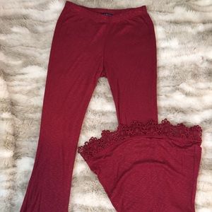 Elastic waist band, super comfy and fun Bellbottom pants with crochet detailed bottom! 80% Rayon 16% Poly 4% Spandex