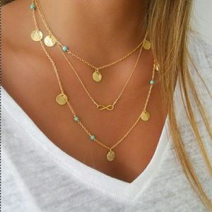 New Fashion Women Gold Multilayers Chain Necklace Three Layers Gold Round/Triangle Pendant Necklace Lady Multilayers Chain