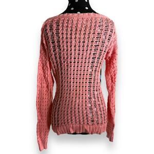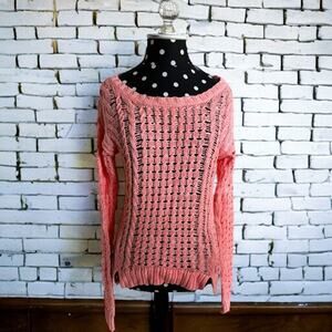American Eagle Womens Sweater Sz XS Peach Salmon Loose Weave Long Sleeve