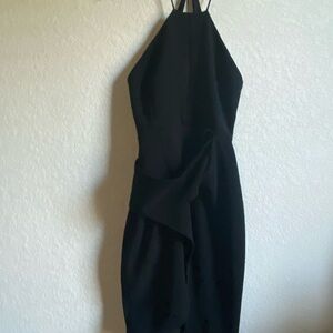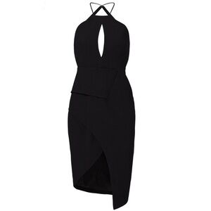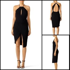 $565 Nicholas Halter Draped Black Open Back Front Slit Designer Elegant Sexy Feminine Party Date Event Dress