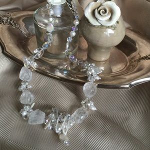 Designer named - The Wedding Wish, necklace constructed beautifully of genuine pearls, quartz and crystal. Sterling silver clasp. Absolutely divine!!!