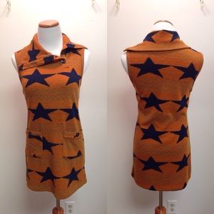 Adorable size small shift dress with navy stars and little blue-green hearts. Gently worn still in great condition. Length: 28 1/2". 96% acrylic & 4% spandex.