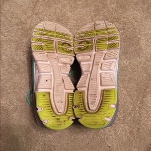 Light blue and gray Champion tennis shoes. Perform fit, lightweight cushioning, 3D Ergonomic fit