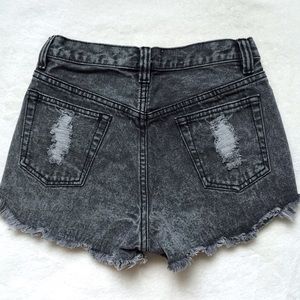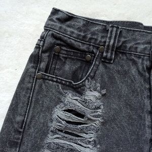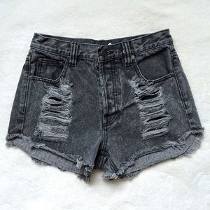 Nasty Gal x MINKPINK gray, acid washed, slasher shorts. Hight waisted with destruction in front and back pockets, frayed hemline, zipper and button closure. Measurement - waist- 13" , length- 12" , inseam -2 1/2". Item measured laying flat on the ground.
