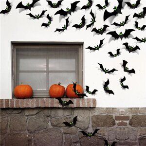 Halloween Decorations - Spooky Glow Eyes 3D Bats Design: These bats feature a realistic 3D design that creates a chilling effect, adding a touch of frightful fun to your Halloween setup. Watch as they appear to fly across your walls, instantly transforming any space into a haunted haven.