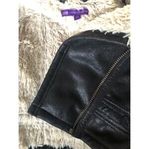 A slightly cropped super cool on trend jacket I wish was my size. Faux black kind of shiny leather.