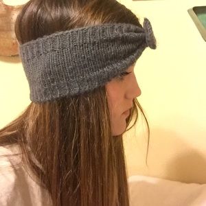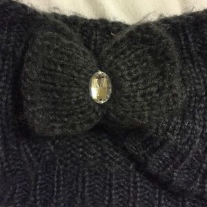 Headband/ear warmer. Grey knit with cute bow on front with rhinestone bead. Can be worn however you'd like! Never worn. Good condition