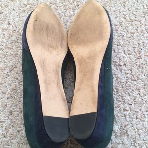 Talbots Suede Color Block Closed Toed Kitten Wedges, Women's Size 8.5 M! In EXCELLENT CONDITION, soles and heels show mild signs of wear (see pictures)! Colors are Emerald Green, Navy Blue and Magenta with gold trim (see pictures for exact colors) ABSOLUTELY STUNNING! OPEN TO ALL OFFERS!