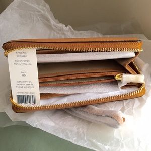 One large inside compartment for up to an iphone 6. Brand new with tag, Royal Tan💕