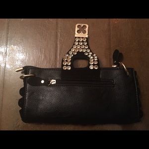 Cowhide / all leather clutch. 3 zipper pockets. Wristlets and shoulder strap.Awesome buckle front.