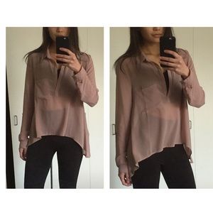 NWOT Tobi Dusty Mauve Pocket Blouse. The perfect sheer top, draped, and a bit oversized. Easy and lightweight. Roll tab sleeves - can be rolled up for a more casual look. Pair with shorts, leggings, white pants, leather pants. Perfect for girls night out 👯.