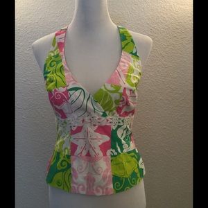 Lilly Pulitzer size 2 halter top! Beautiful! Excellent pre-owned condition. Neck tie makes for a perfect fit.