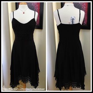 * Beautiful embellished crochet floral eyelet lace handkerchief style hi lo hem; cocktail or casual