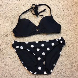 Super cute new without tags black small push up style top in a small will go with any bottom the bottom is also a small black with cream color dots