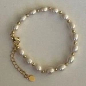 5-6mm White Cultured Pearl Bracelet - 6 to 8 Inches - 14K Yellow Gold Plate