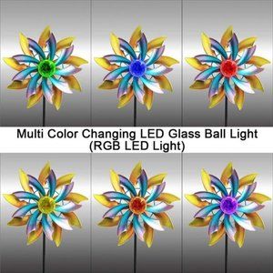 57 Inch Solar Wind Spinner with Metal Garden Stake, Multi Color Changing LED