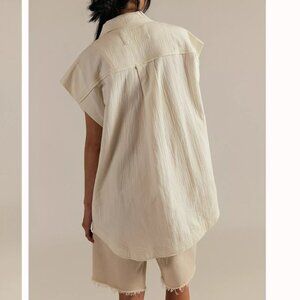 A classic piece gets a warm-weather twist with this sleeveless button-down from We The Free, featured in an airy textured cotton and oversized silhouette with muscle-cut sleeves for endless layering. Collared neckline, Button-front closure, Oversized, Patch pocket, Back pleat.