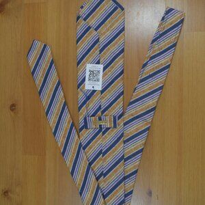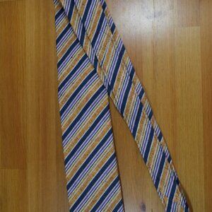 $570 ITALO FERRETTI Navy Blue Striped Handmade Silk Linen Neck Tie Italy XL