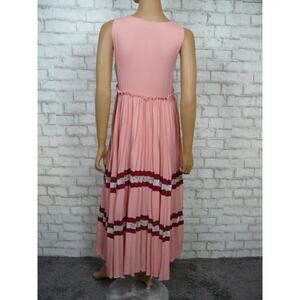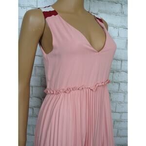 $570 Maje Pink Burgundy Lace Inset Vneck Ritello Accordion Pleat Maxi 1 NWT