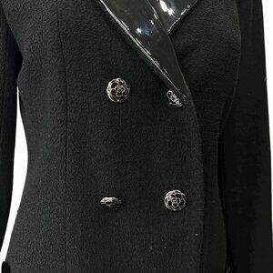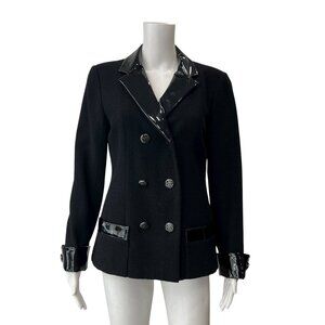 $5700 CHANEL 2015 Black Multi Wool Patent Blazer Jacket size FR 40/8