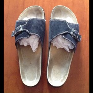 Black suede pumps in very good condition with 3 1/2" heels and leather soles.